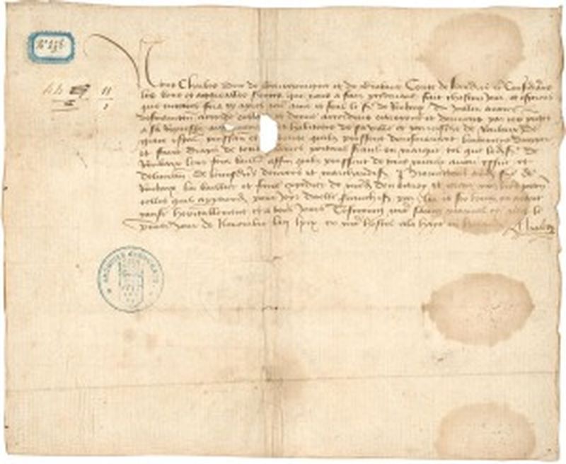 Lettre de Charles le Téméraire, Duc de Bourgogne et de Brabant, rappelant qu'il avait été accordé aux habitants et manants de la ville et paroisse de Roubaix, le privilège de licitement draper et faire drap de toutes laines portant sceau et marque tels que le Seigneur de Roubaix leur fera bailler.
