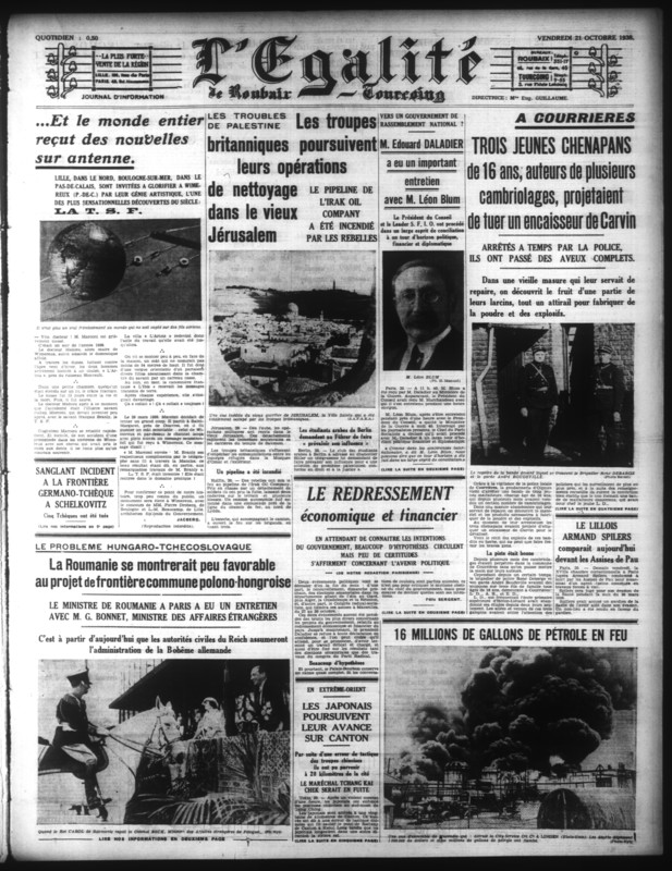 https://www.bn-r.fr/ark:/20179/ALTOBNR100825 L’Egalité Roubaix-Tourcoing book 21 Octobre 1938 L’Egalité Roubaix-Tourcoing, 21 Octobre 1938 10 p. français Alto
