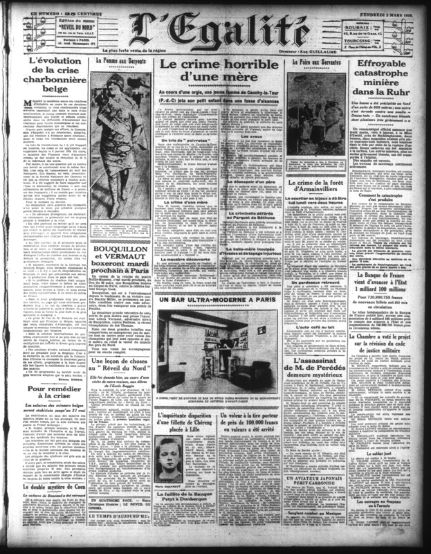https://www.bn-r.fr/ark:/20179/ALTOBNR112676 L’Egalité Roubaix-Tourcoing book 02 Mars 1928 L’Egalité Roubaix-Tourcoing, 02 Mars 1928 6 p. français Alto
