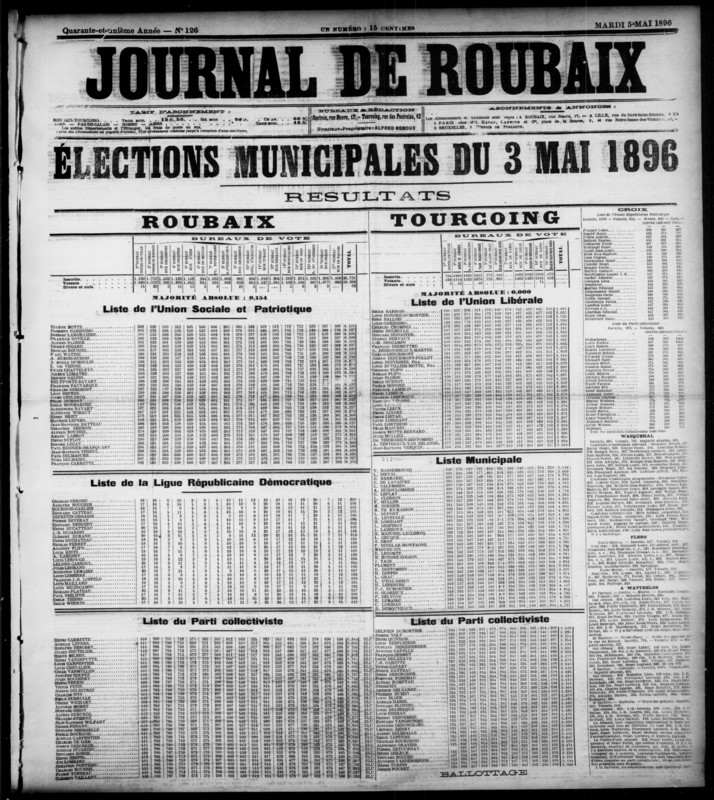 https://www.bn-r.fr/ark:/20179/ALTOBNR118139 Journal de Roubaix book 05 Mai 1896 Journal de Roubaix, 05 Mai 1896 4 p. français Alto